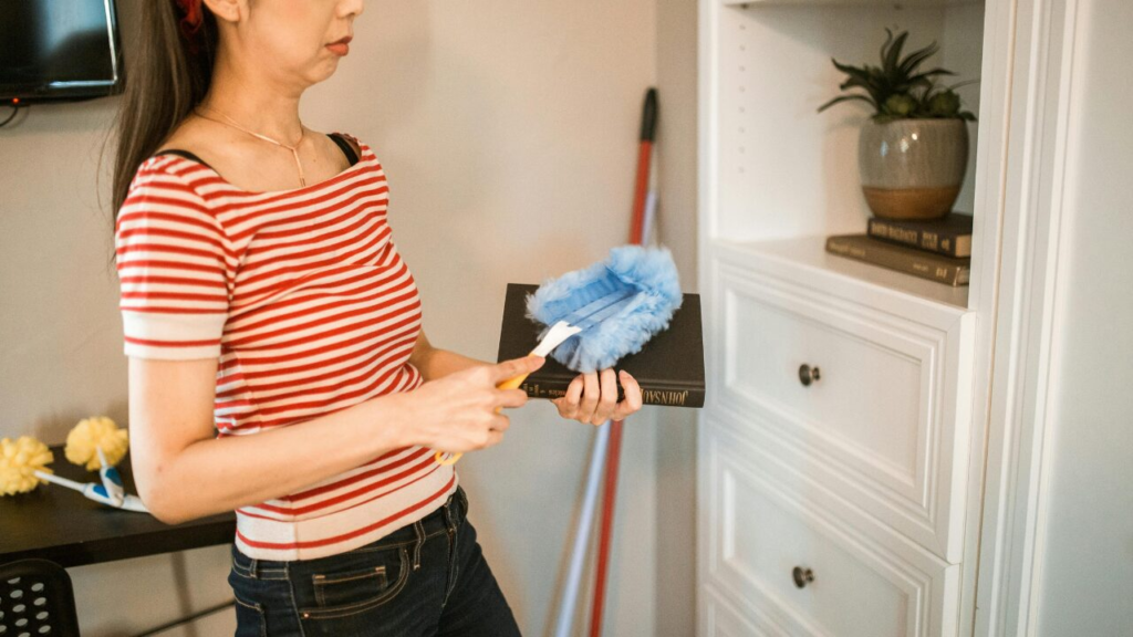 - 本棚の近くにモップやクロスを置いて「見たらやる」仕組みを作る