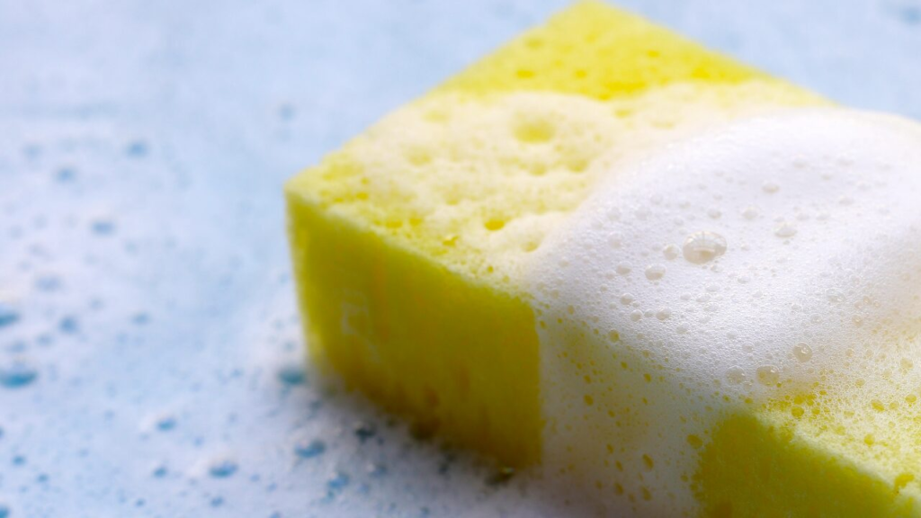 おすすめは、水やお湯で薄めた洗剤液を作ってからスポンジにつける方法。バケツやボウルに洗剤を数滴たらし、泡立ててから使えば、必要十分な洗浄力を保ちつつ、手への負担を軽減できます。