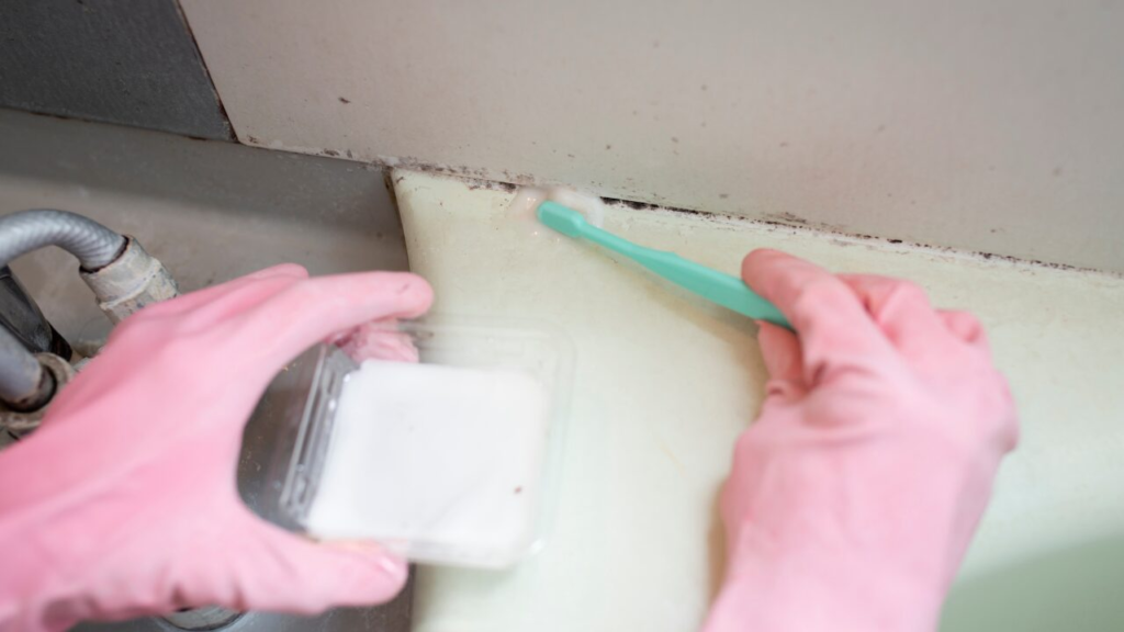 重曹を水に溶かした「重曹水スプレー」で吹きかけ、ブラシやスポンジでこすると黒ずみが取れてスッキリ。