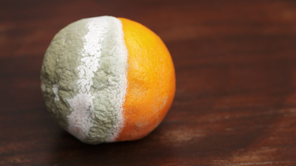 - 表面上の黒ずみを拭き取っても、根(菌糸)は残ったまま。数日後に同じ場所に再発します。