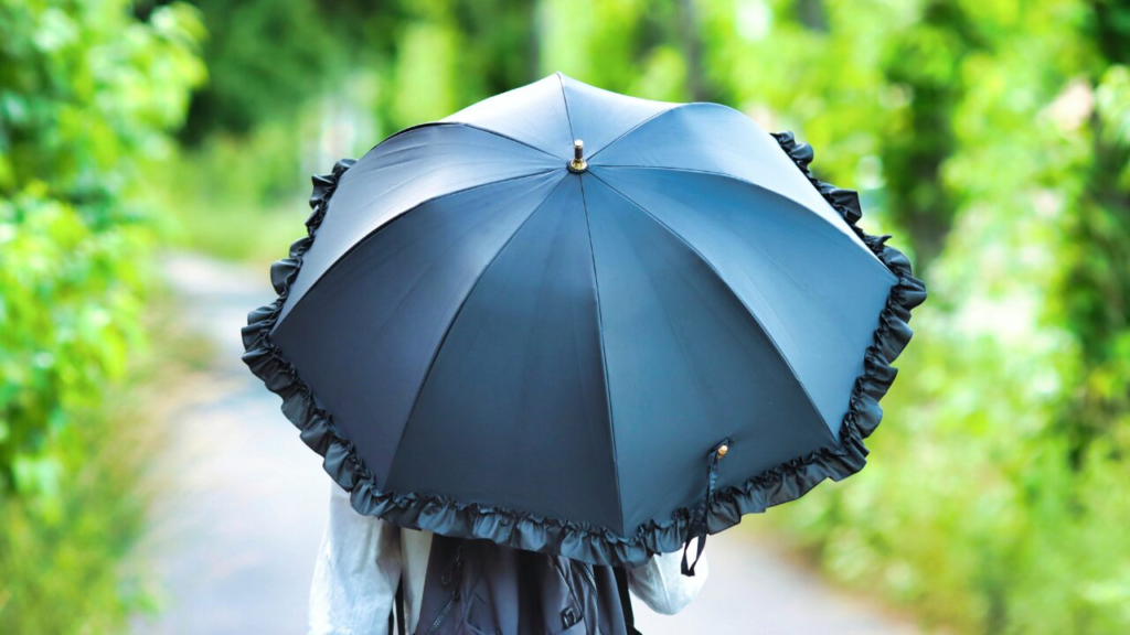 日差しだけでなく、突然の雨にも対応できるのが晴雨兼用タイプの魅力です。完全遮光日傘の多くは、防水加工が施されているため、UVカットと雨除けの両方に対応しています。梅雨時期や不安定な天気の日でも、傘を1本持っていれば安心。荷物を減らしたい旅行中や、傘の置き忘れが気になる通勤・通学でも、晴雨兼用は大きなメリットです。