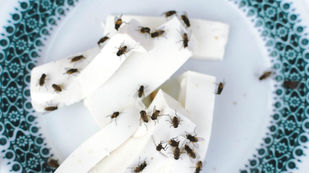 ショウジョウバエは、果物・野菜・調味料・菓子類などに強く引き寄せられます。特に夏場は、常温で放置した食品が短時間で発酵・腐敗しやすくなります。