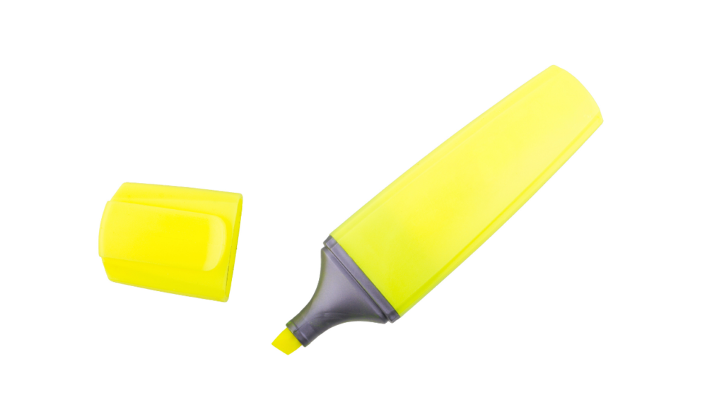 - ✅ 黄色系には「ピラニン(Pyranine)」という染料がよく使われ、視認性が非常に高く、ノートや書類のマーキングに最適。